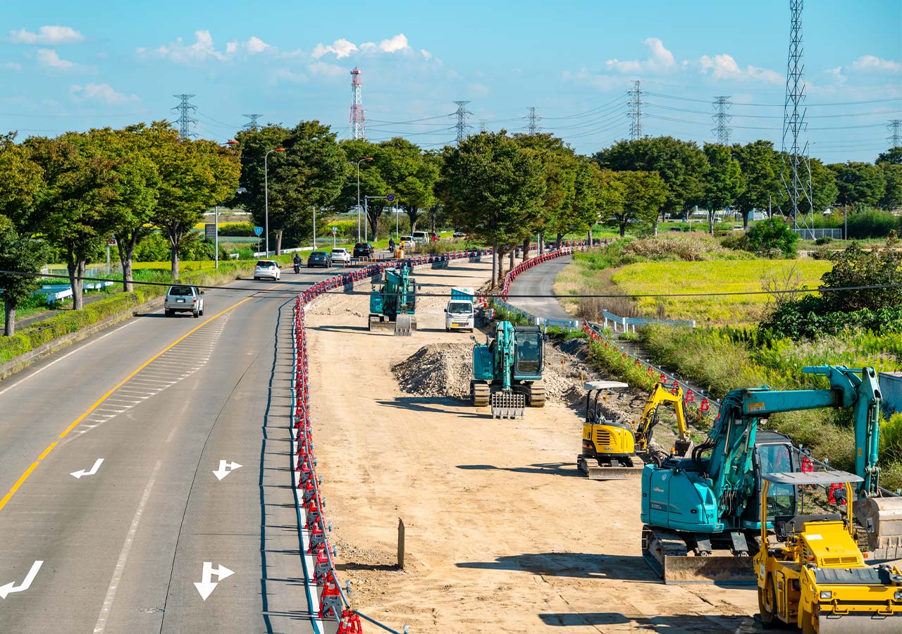 - 道路工事、河川工事、橋梁工事、上下水道工事、区画整理・造成工事