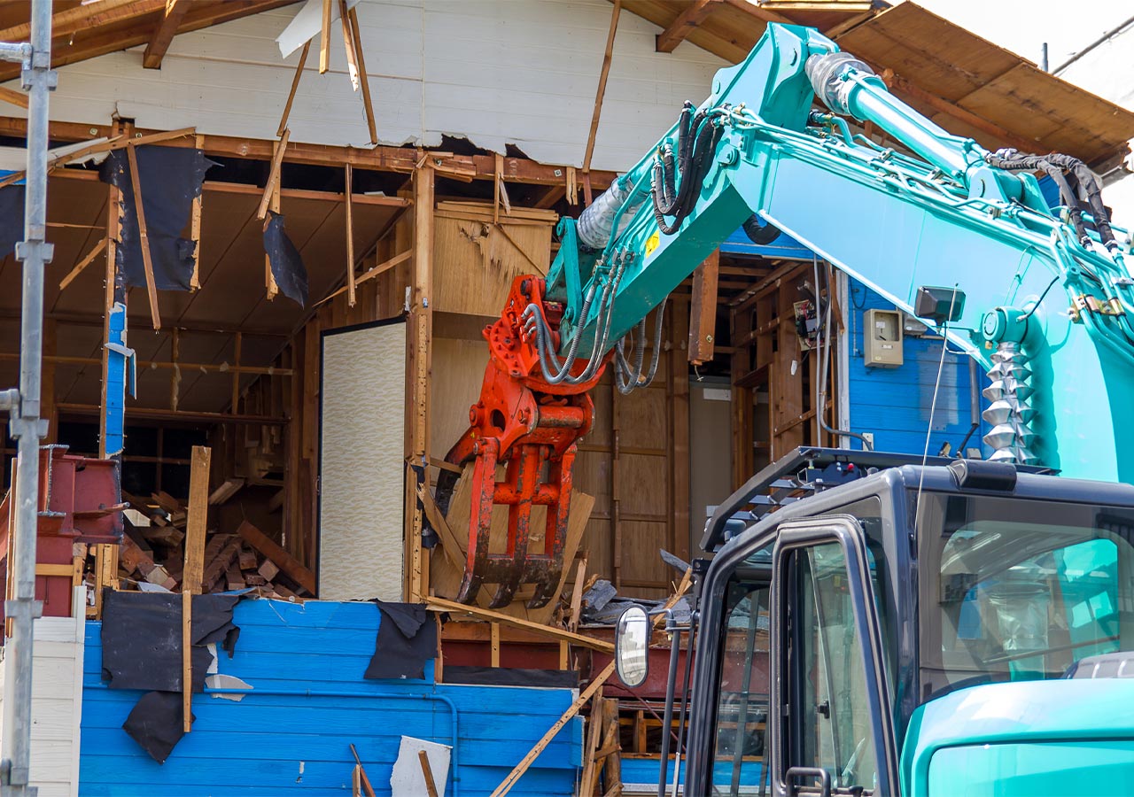 - 木造・鉄骨造・RC造解体、内装解体、付帯工事(樹木伐採、外構撤去)
